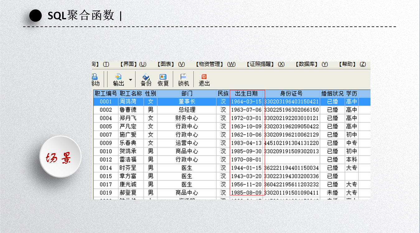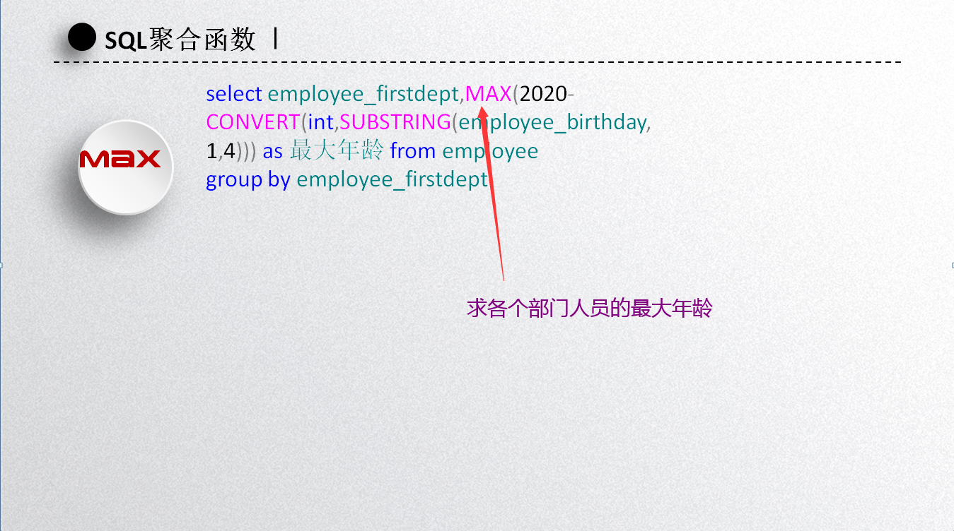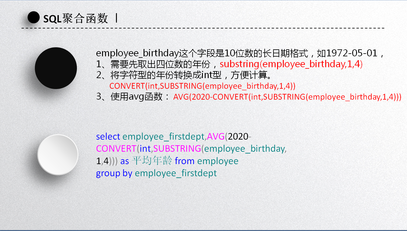 以上是职员表,其中有一列是职员的出生年月,如何得到各个部门人员的平均年龄?