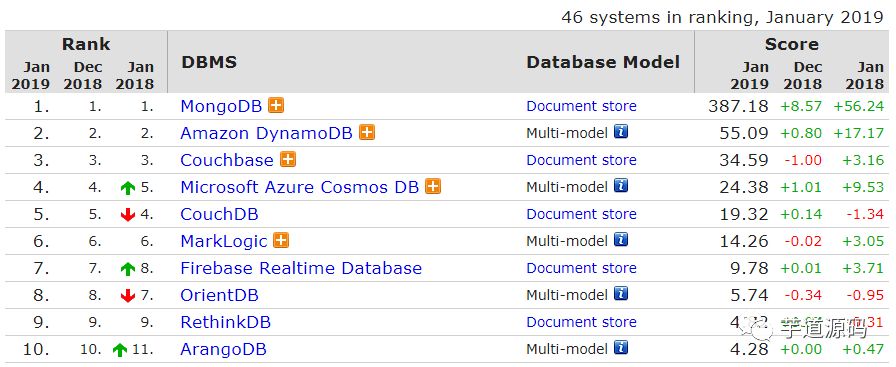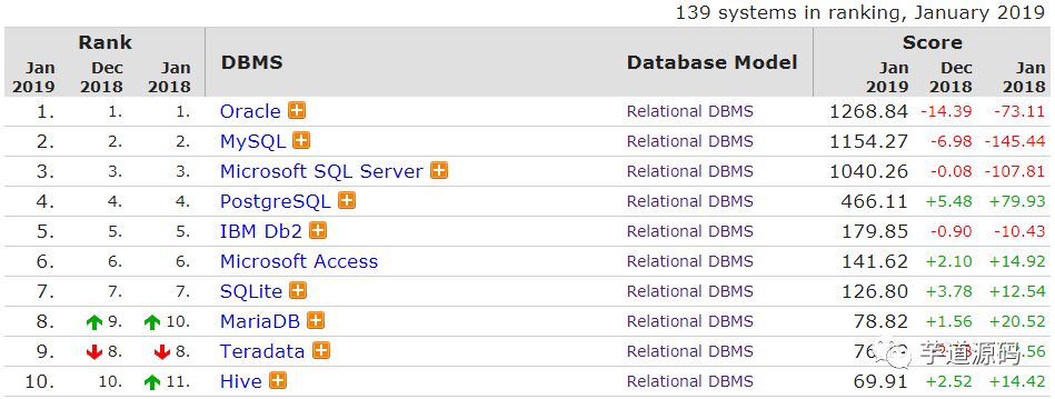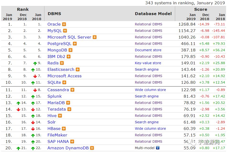 其他方面的变动,以及完整排名请查看?https://db-engines.com/en/ranking。