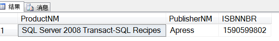 (ProductNM,PublisherNM,ISBNNBR)