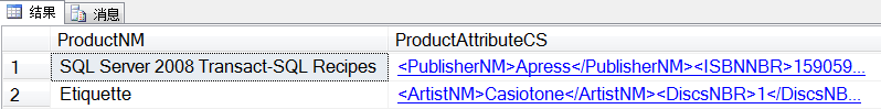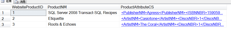 结果中看到的,每一行都展示了显示所有非NULL列值元素的无类型的XML数据。可以使用INSERT和UPDATE来修改所有稀疏列的值。随后的查询演示了添加一个新行: