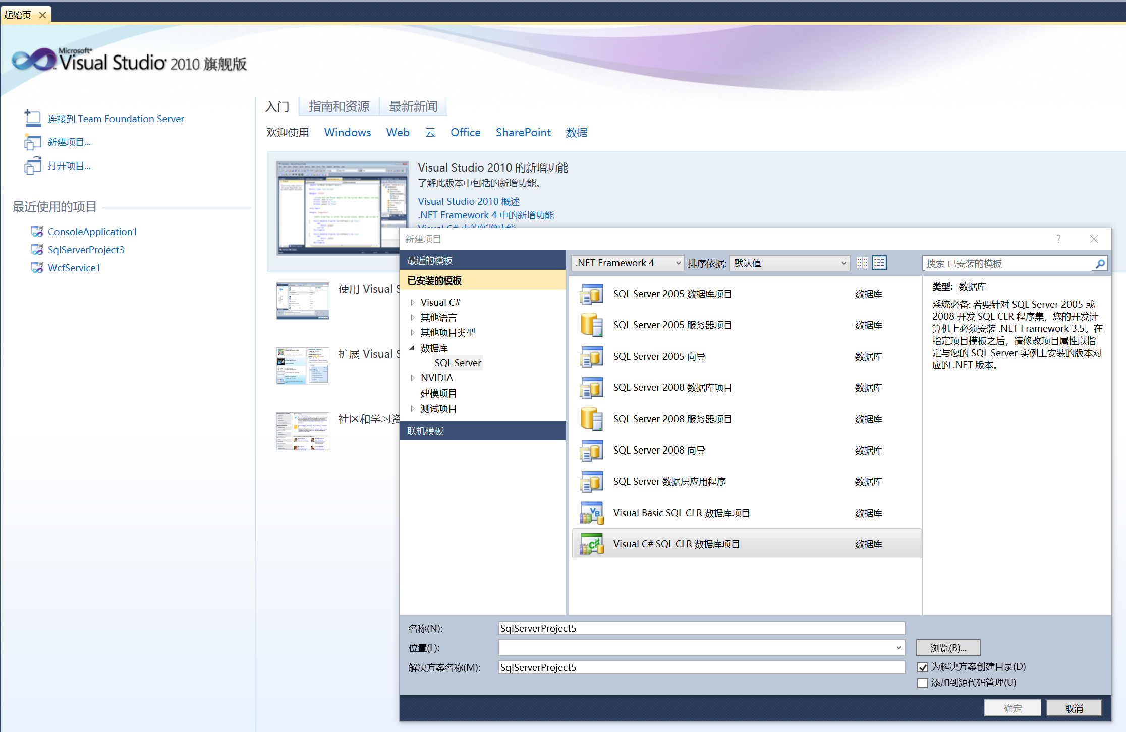 创建c# clr项目的地方变了,在vs 2010里有专门的项目模板: