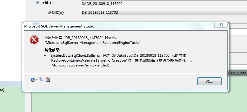SqlServer 2014 还原数据库时提示:操作系统返回了错误5,,拒绝访问