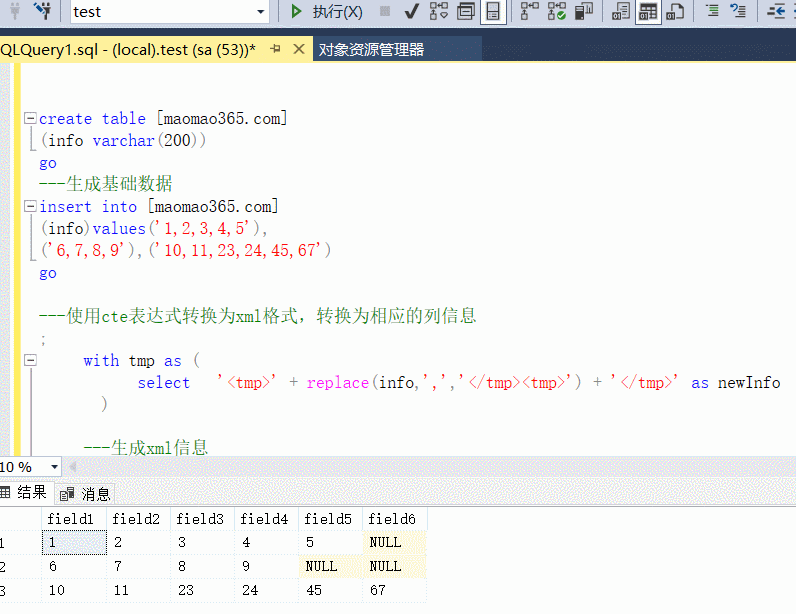 ---使用cte表达式转换为xml格式,转换为相应的列信息