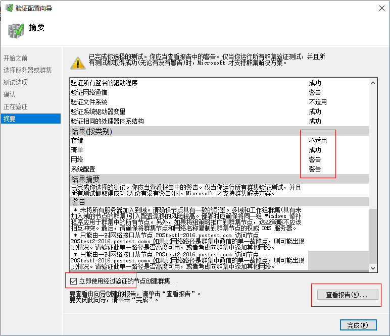 - 可以点击查看验证报告,勾选立即使用经过验证的节点创建集群