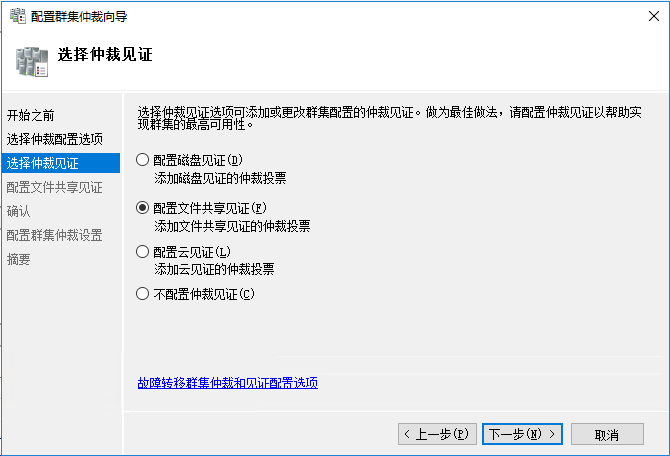 由于我们是两个节点的故障转移集群,所以需要加上共享文件夹,如果是奇数节点,这一步是不需要做的!