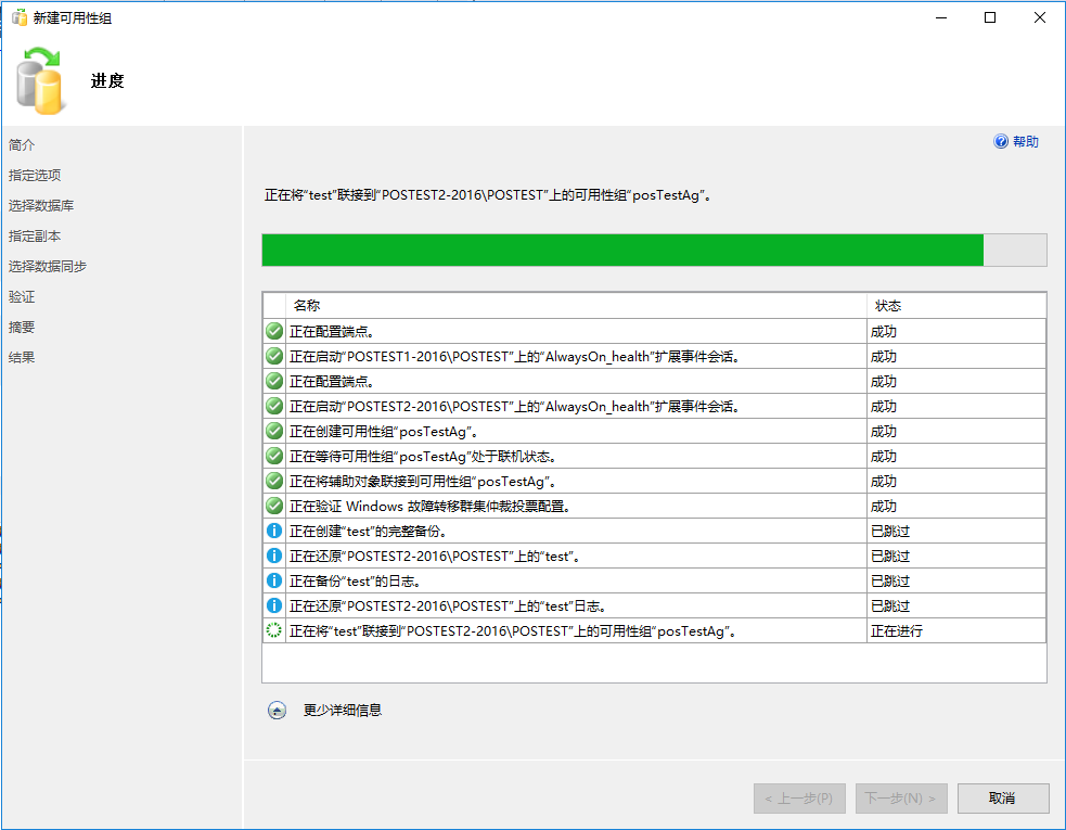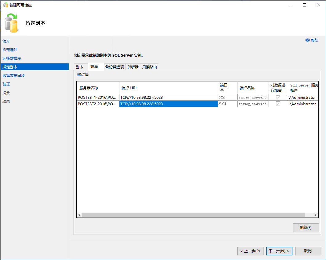 数据同步这里建议使用完整的数据库和日志备份的方式更方便,需要有一个共享文件夹,并且节点服务器要有相同的数据库文件目录结构