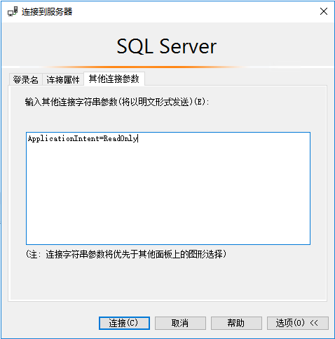使用 ssms 或者 ef 等需要在连接字符串设置参数applicationintent=readonly