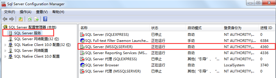 (1)检查mssqlserver服务是否开启