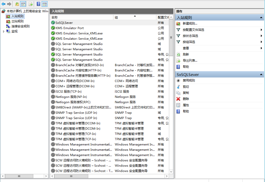 三、查看防火墙是否允许1433或者你设置的数据库端口通过