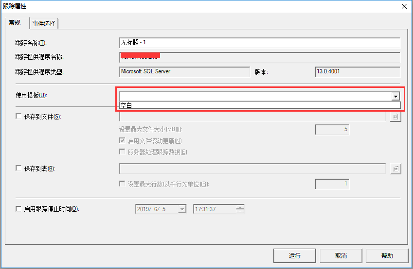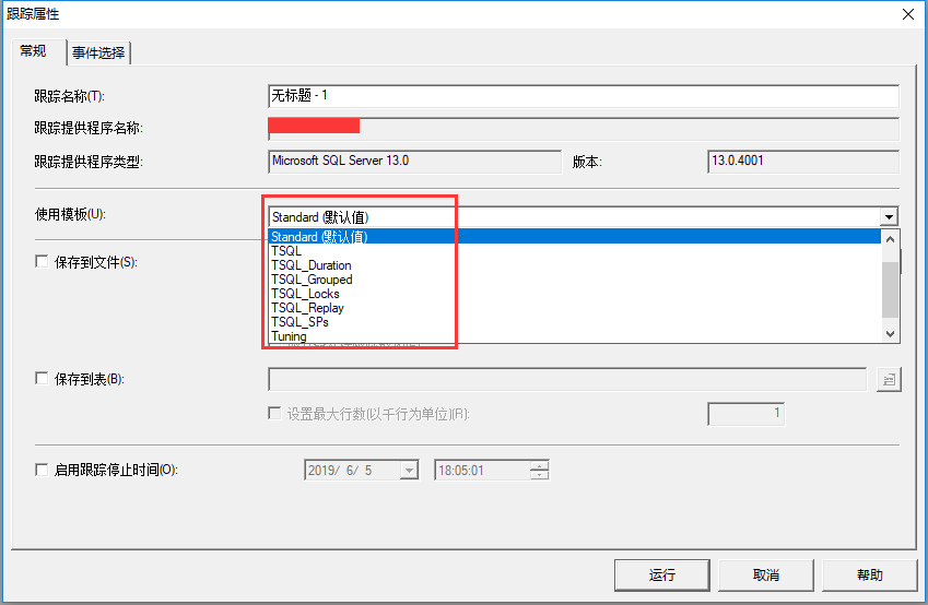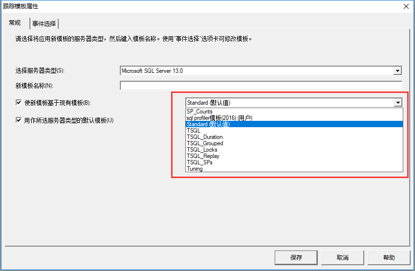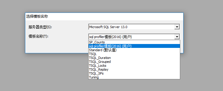 其实还可以注意到,如果我们直接在sql server 2012中连接2016抓取profiler时,没有任何的模板可以选择,这就需要我们每次都重新设置跟踪的选项,很是麻烦。