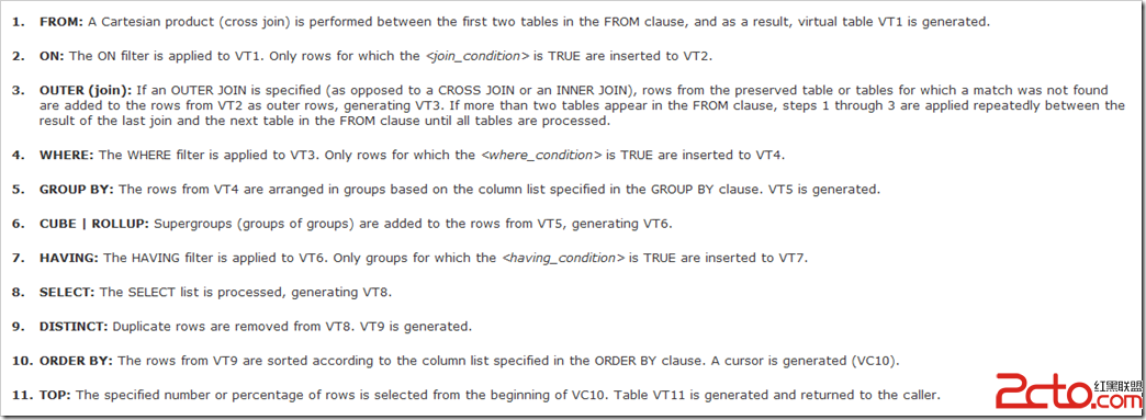 很多朋友都会使用t-sql编写查询,但实际上对于其工作原理大多知之甚少。下面我们来分析一下查询的逻辑工作原理,也就是说一个查询到底是怎么一步一步的工作,最终给我们展示数据的。