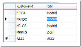 insert into dbo.customers(customerid, city) values('frndo', 'madrid');
