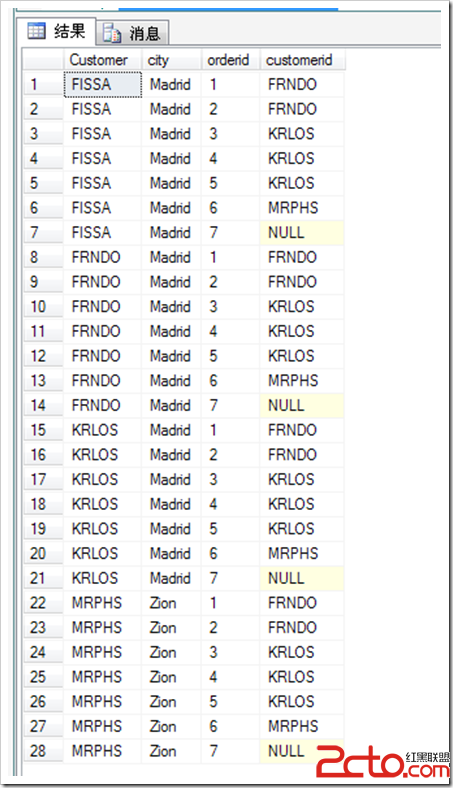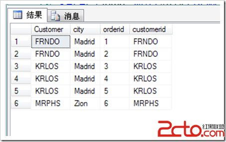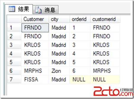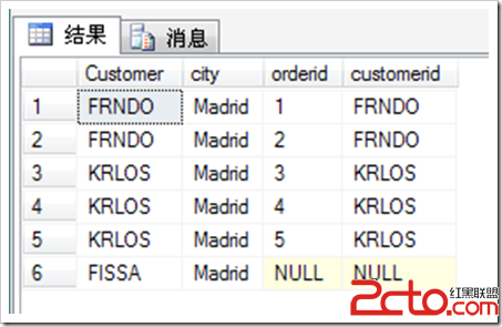 --第二步:处理on子句,只把那些两个表的customerid匹配的行找出来,我把它们放到vt2中去
