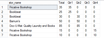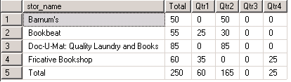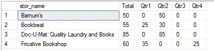 select a.stor_name as stor_name ,sum(a.total) as total,sum(a.qtr1) as qtr1,