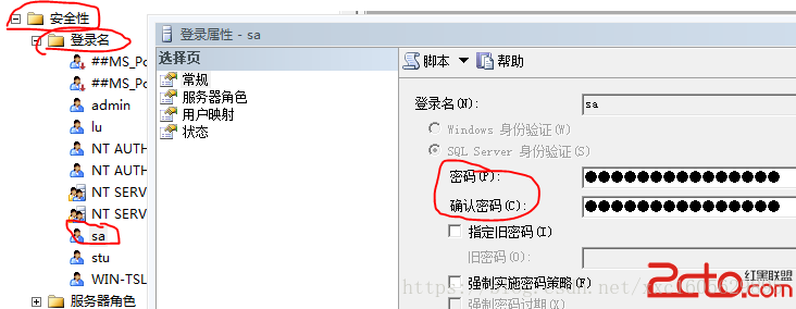 2、用sql server身份验证登录,默认的登录名是sa,如果密码忘记了可以用windows身份登录后,进入 更改。安全性->登录名->双击sa->设置密码。