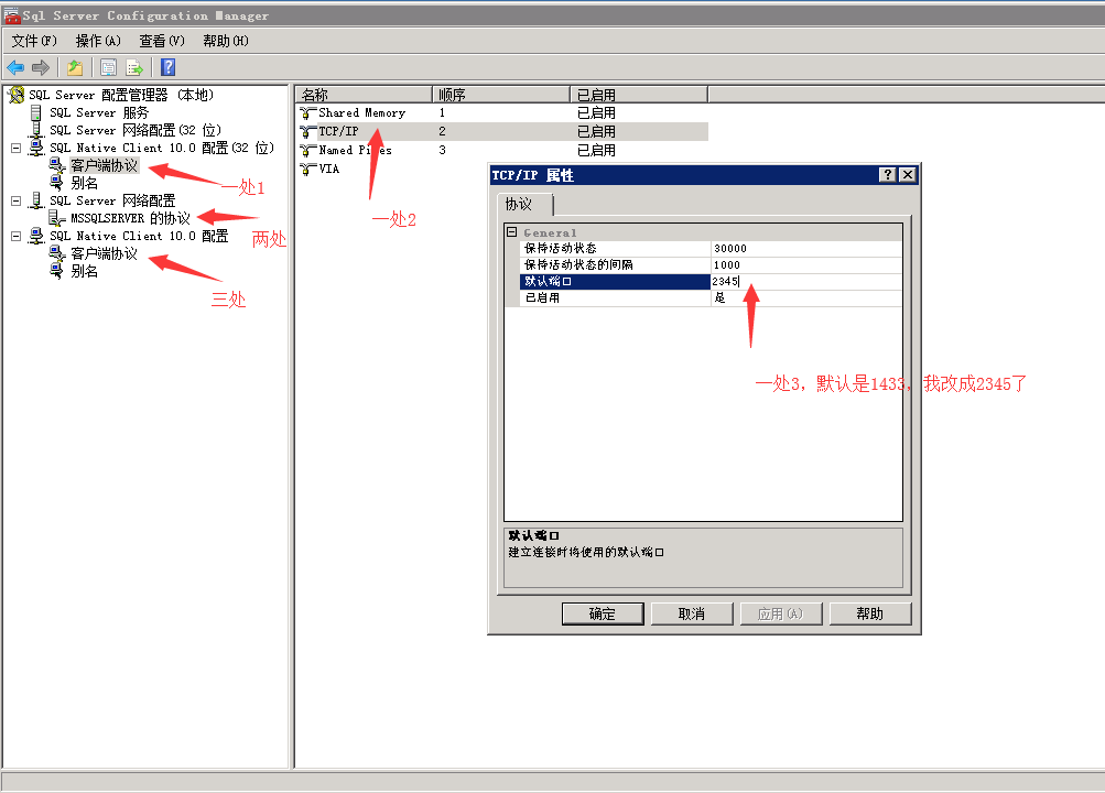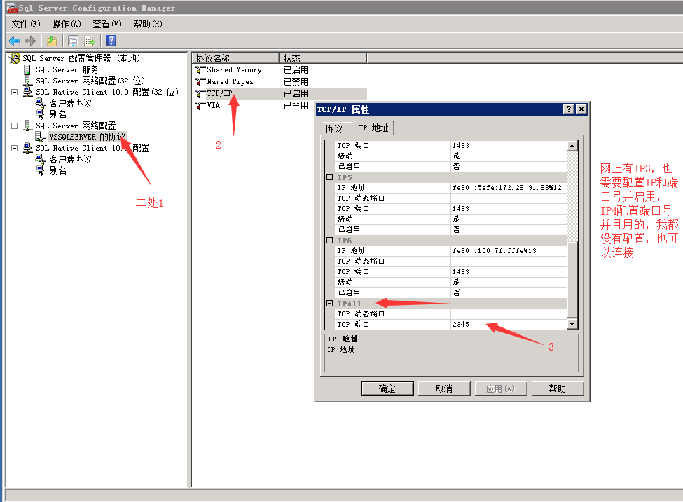 1、主要是sql server 配置管理工具的配置