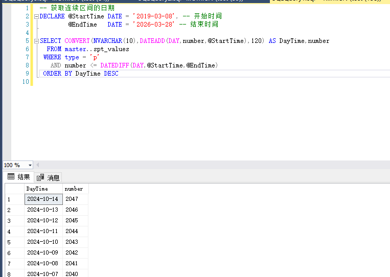 SQL Server获取连续区间的日期