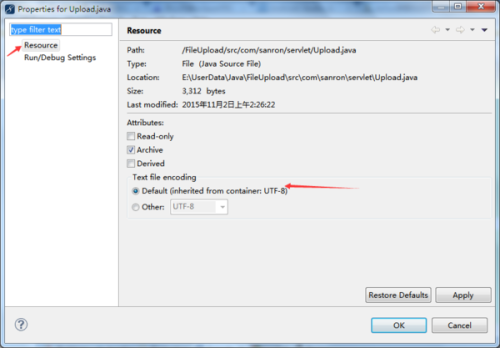 修改文件编码方式,和修改工程编码基本一致,右击文件——properties