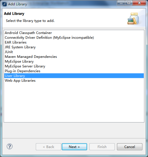 选择User Library,Next