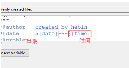 4.然后可以在里面添加自己想写的东西,日期可以写成${date},时间${time},这样便可以每次新建类的时间,系统自动添加
