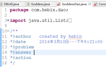 4. 然后便可以在里面添加自己想写的东西,日期可以写成${date},时间${time},这样便可以每次新建类的时间,系统自动添加