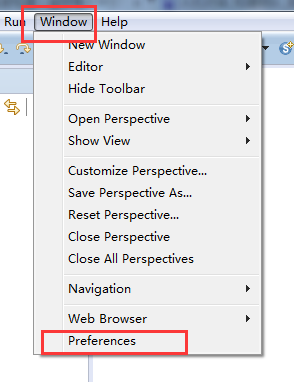 ①启动Eclipse,zai菜单栏选择【Window】==>【Preferences】。