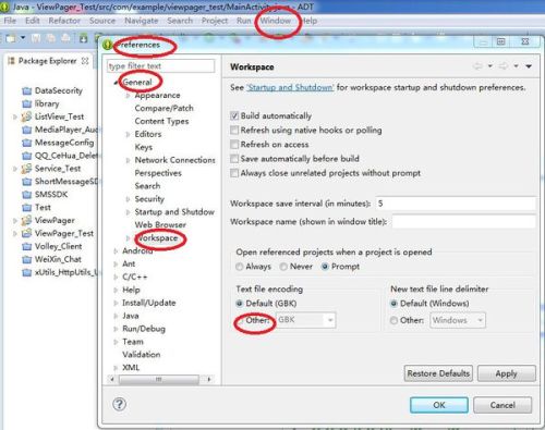 编码格式的修改主要分为3种情况:工作区间的编码格式、项目的编码格式、文件的编码格式。 1、修改工作区间的编码格式: 点击标题拦上的window--->preferences,然后选择General--->Workspace修改即可,如图所示: 2、修改项目的编码格式: 选中项eclipse 导入项目中文乱码 已经更改了整个项目为UT
