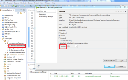 选中项目中的某一个类,选择properties--->resuources--->other,如图所示: