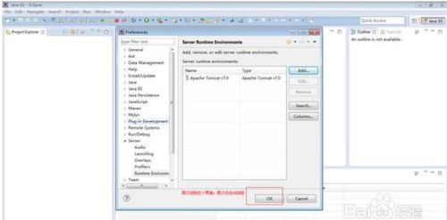 在上图中点击了完成按钮,在回到的界面中再次点击Ok按钮,这样就完成了eclipse中对添加tomcat服务器的配置。