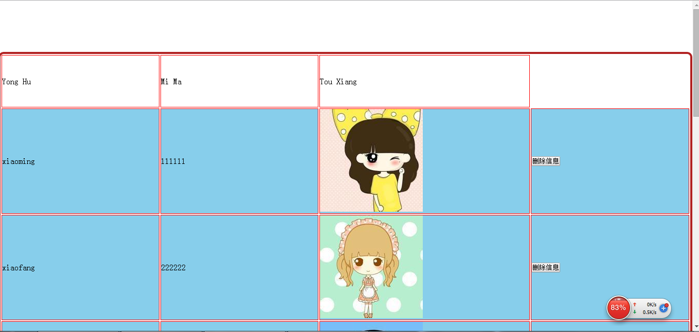 newRow.insertCell(newRow.cells.length).innerHTML ="<img src='"+users[i].u_pics+"'>";//此处要在这个单元格里插入img元素,将提交传过来的路径指定为此img的
