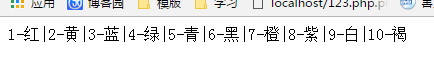 //用-把$v拼起来,拼出来是1-红2-蓝,用|分割,拼出来是1-红|2-蓝|