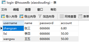 这里我用ajax写一个简单的登录页面:首先用到的是数据库login的表: