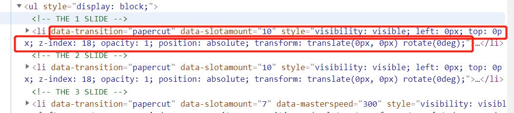 因为用了bootstrap轮播图框架,所以《ul》标签中的《li》我就想用append从服务器添加,检查网页发现在并不像在代码中看到的《li》的属性那么简单,在正常的运行的轮播图中《li》是有被额外加属性的,如图