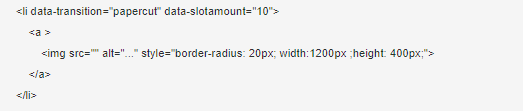 <li data-transition="papercut" data-slotamount="7" data-masterspeed="300">