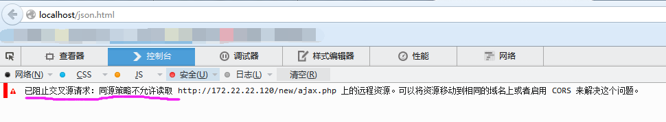 根据同源策略的概念,localhost和172.22.22.120是出于不同的域名下的,所以跨域请求理所当然地被浏览器拒绝了。