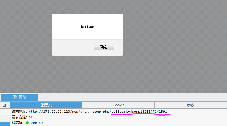 // 客户端使用getjson方法请求另一台机子上的脚本