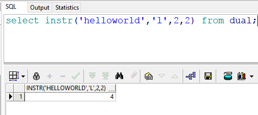 select instr('helloworld','l',2,2) from dual; --返回结果:4 也就是说:在"helloworld"的第2(e)号位置开始,查找第二次出现的“l”的位置