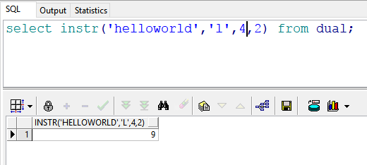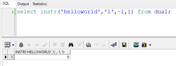 select instr('helloworld','l',-1,1) from dual; --返回结果:9 也就是说:在"helloworld"的倒数第1(d)号位置开始,往回查找第一次出现的“l”的位置