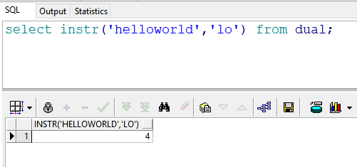 select instr('helloworld','lo') from dual; --返回结果:4 即“lo”同时(连续)出现,“l”的位置