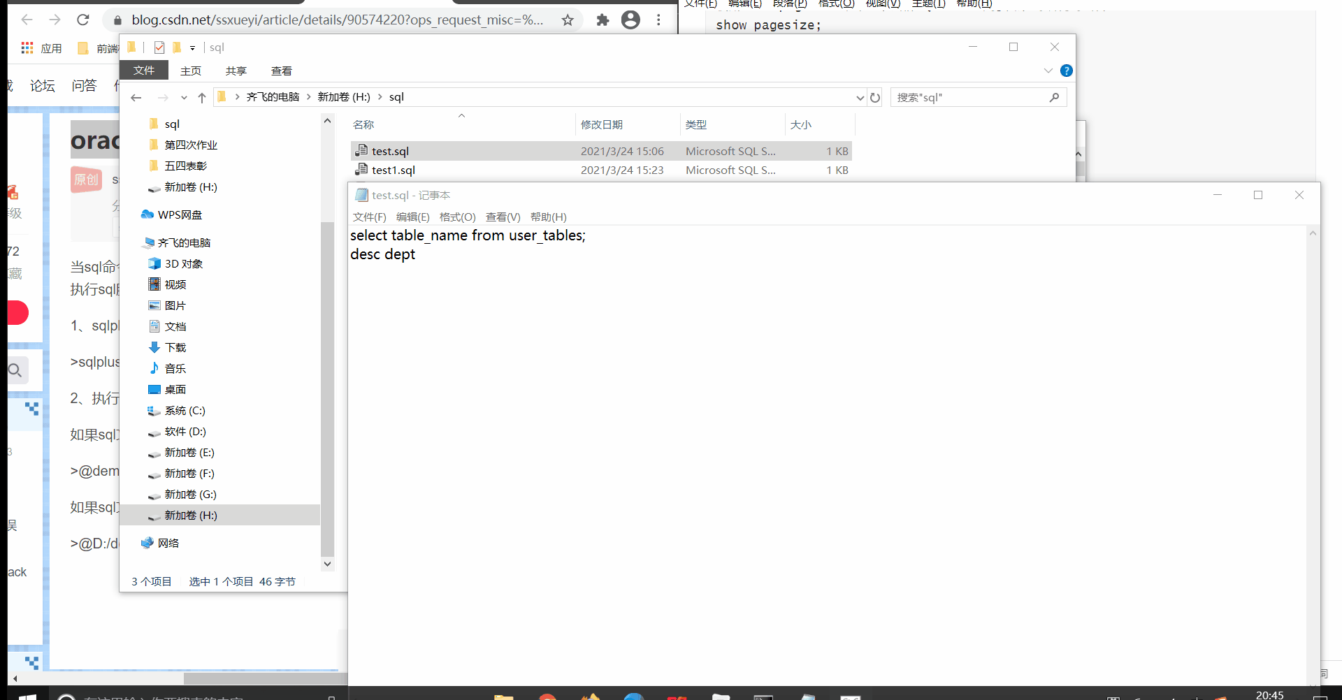 oracle用命令执行sql脚本文件