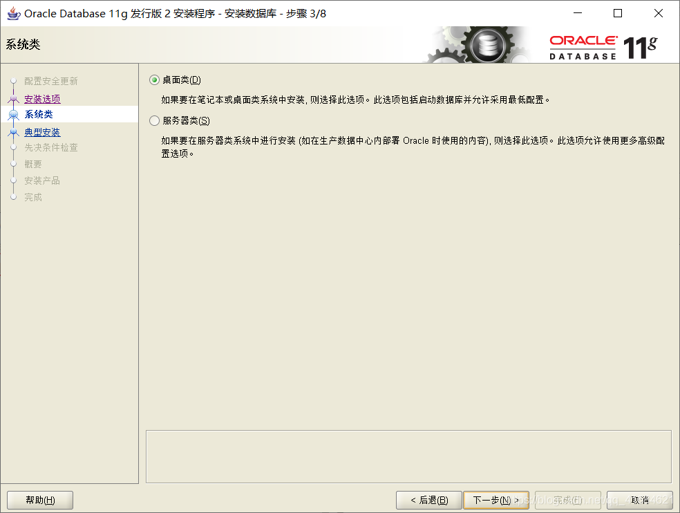 这里选择 桌面类, 如果你是安装在windows server上的话就选择服务器类。