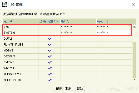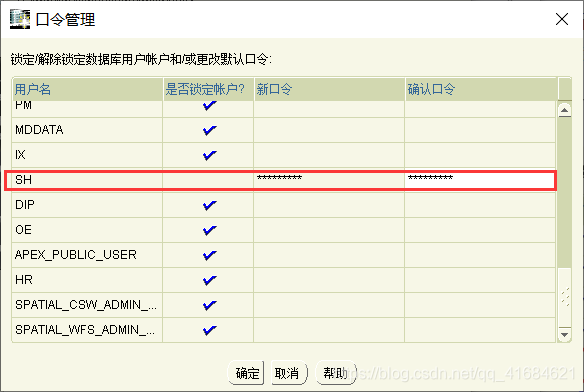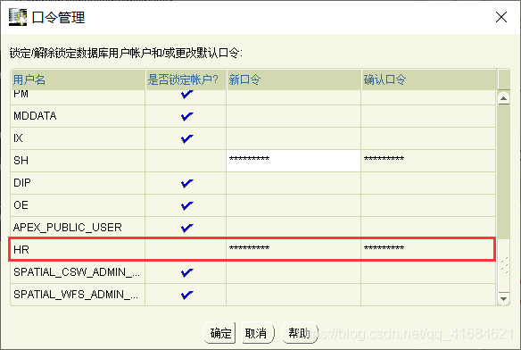 将hr 用户解锁并设置相应的密码 ,完成后,点击【确定】。