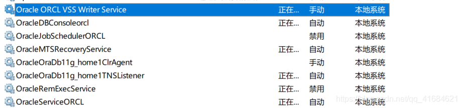 oracleoradb11g_home1tnslistener:是监听服务,如果要通过程序或者是不同的客户端连接oracle数据库的时候,此服务必须启动,否则无法连接