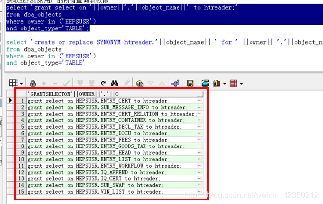 获取原账号hepsusr用户的所有查询表权限