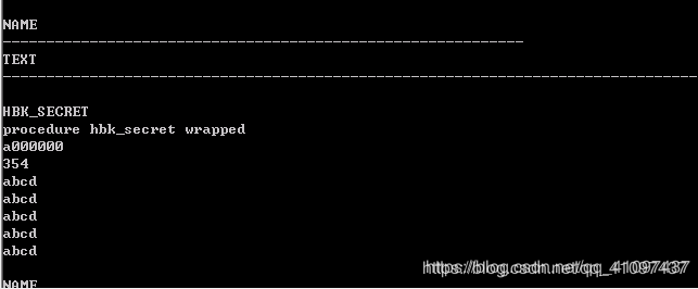 sql> execute hbk_secret;