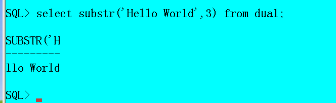 select substr('hello world',3) from dual;