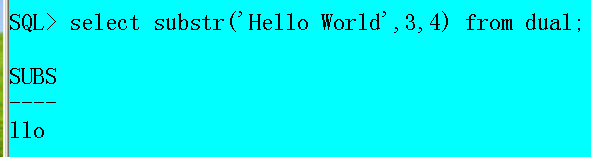 select substr('hello world',3,4) from dual;