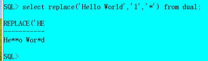 select replace('hello world','l','*') from dual;