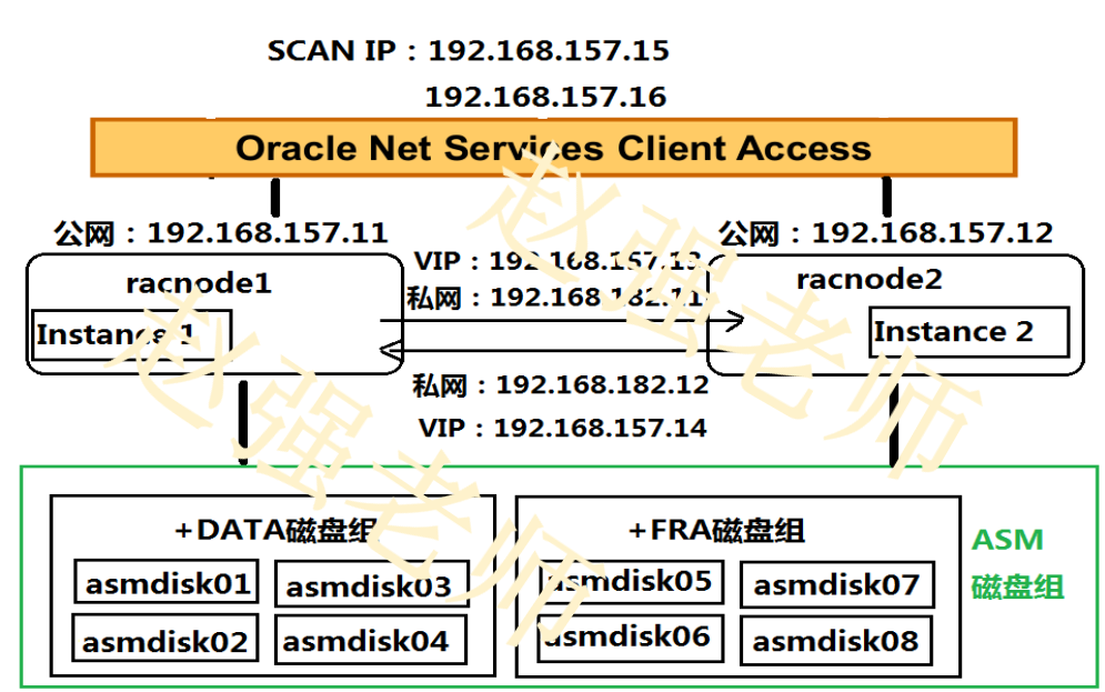 rac中的实例,除了有单实例固有的那些后台进程,还会多一些用来进行rac实例之间进行交互的进程。在rac中,每个实例有自己单独的redo log和undo表空间。因为每个实例都要独自处理事务。但是这些redo和undo文件同样要放置在共享磁盘中,因为一旦实例崩溃,其他的实例要能读取到该实例的redo和undo进行事务的恢复。