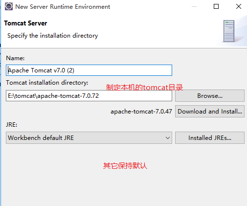 上图中,选择tomcat v7.0版本,点击next,如图: